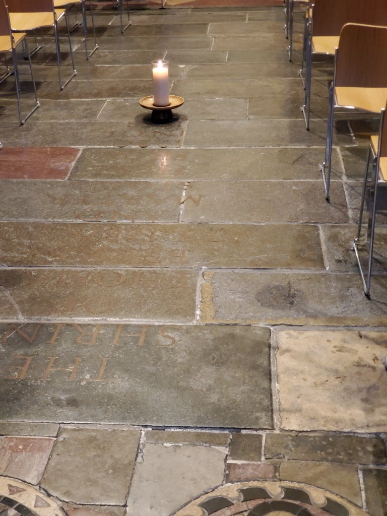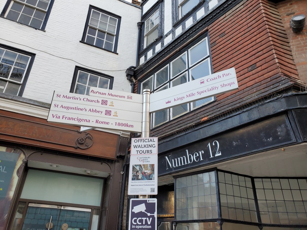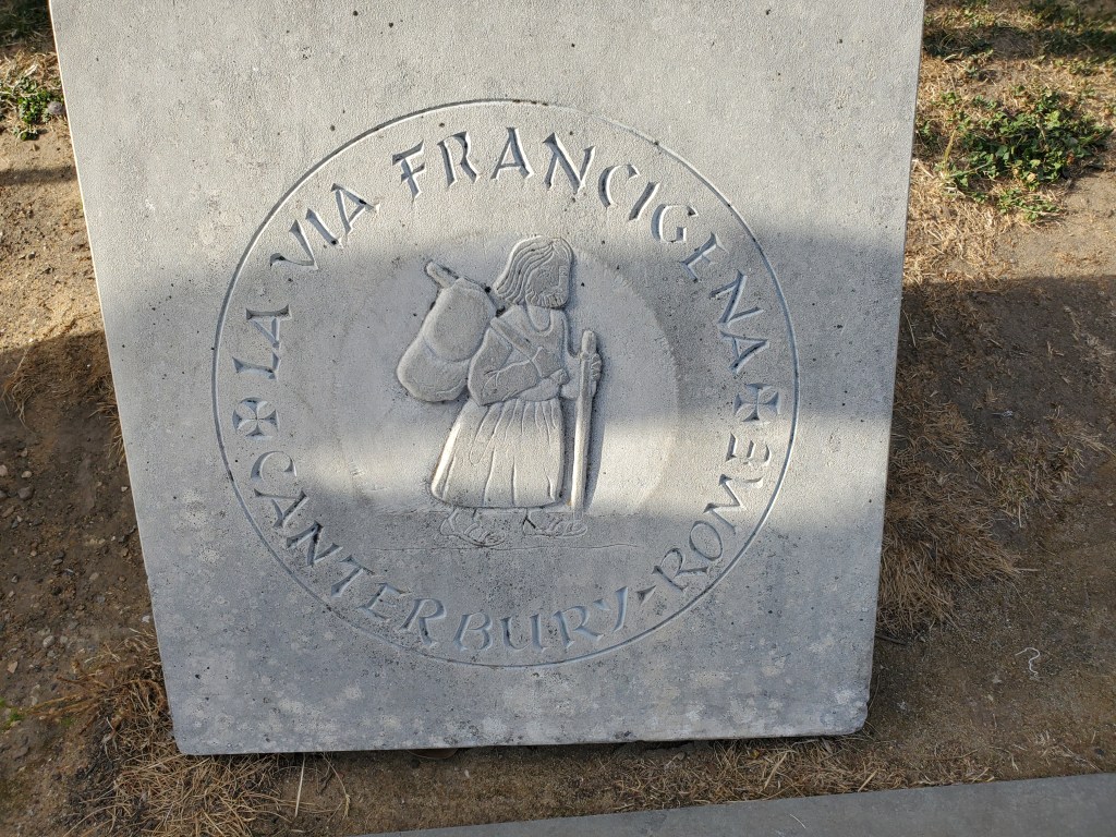 Saw a sign for the Via Francigena.The doors are small and crooked…shall we just call them quaint?Our hotel (Cathedral Gate) is an odd w arren if hallways and stairs going every which way. Ken would never find his way home from the pub on his own!Cathedral is breath taking.My three candles at top for our parents and Ryder.This is Chris, the only other pilgrim we met…and we were the only ones he had met. He had walked from Winchester. We had actually crossed paths with him about 2 days earlier(on the frosty lets walk 2.4 km for nothing day 🙂). We spent much time talking and ended up seeing each other multiple times during the day, culminating with sitting together during Evensong. So pleased for you, Chris, that your pilgrimage was meaningful for you and we are grateful to have been able to meet you. Congratulations on your upcoming university graduation!