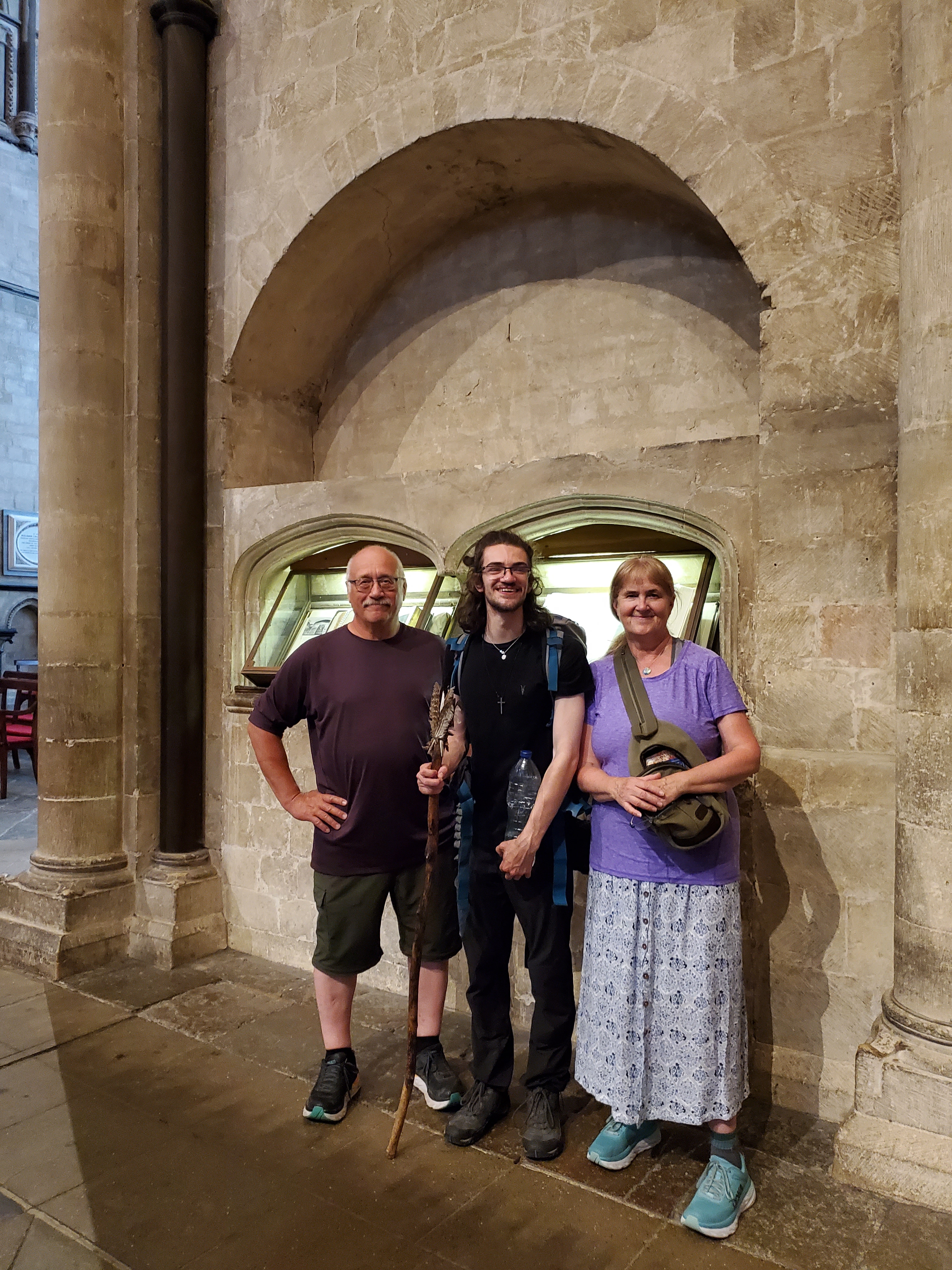 Today was meant to be a day of rest, an opportunity to visit the Cathedral and get our pilgrim stamp, and attend a service…and do laundry. It started with a £13 taxi ride two miles to a laundromat, Terry admittedly having a hissy fit over there not being any loadable cards and struggling to finally download an app to get a QR code, asking for £10 of laundry time and being charged £20, and then the machines not working in the end because the wifi was not strong enough to actually run the machines, just steal your money! So we stormed..okay, Terry stormed, Ken sauntered out…but I worked out my frustration on the quick march back to our hotel. And then rest of the day was…so good.