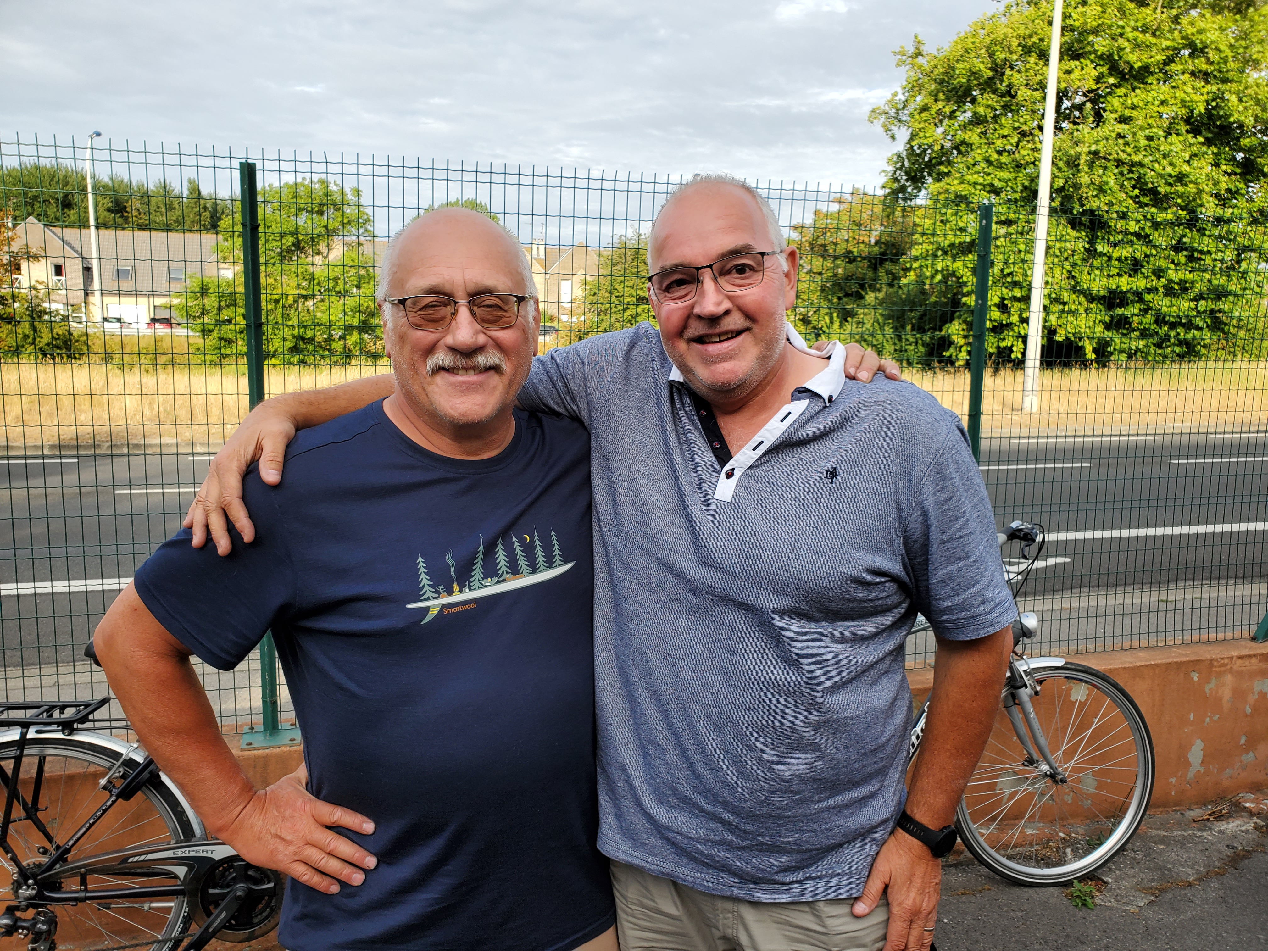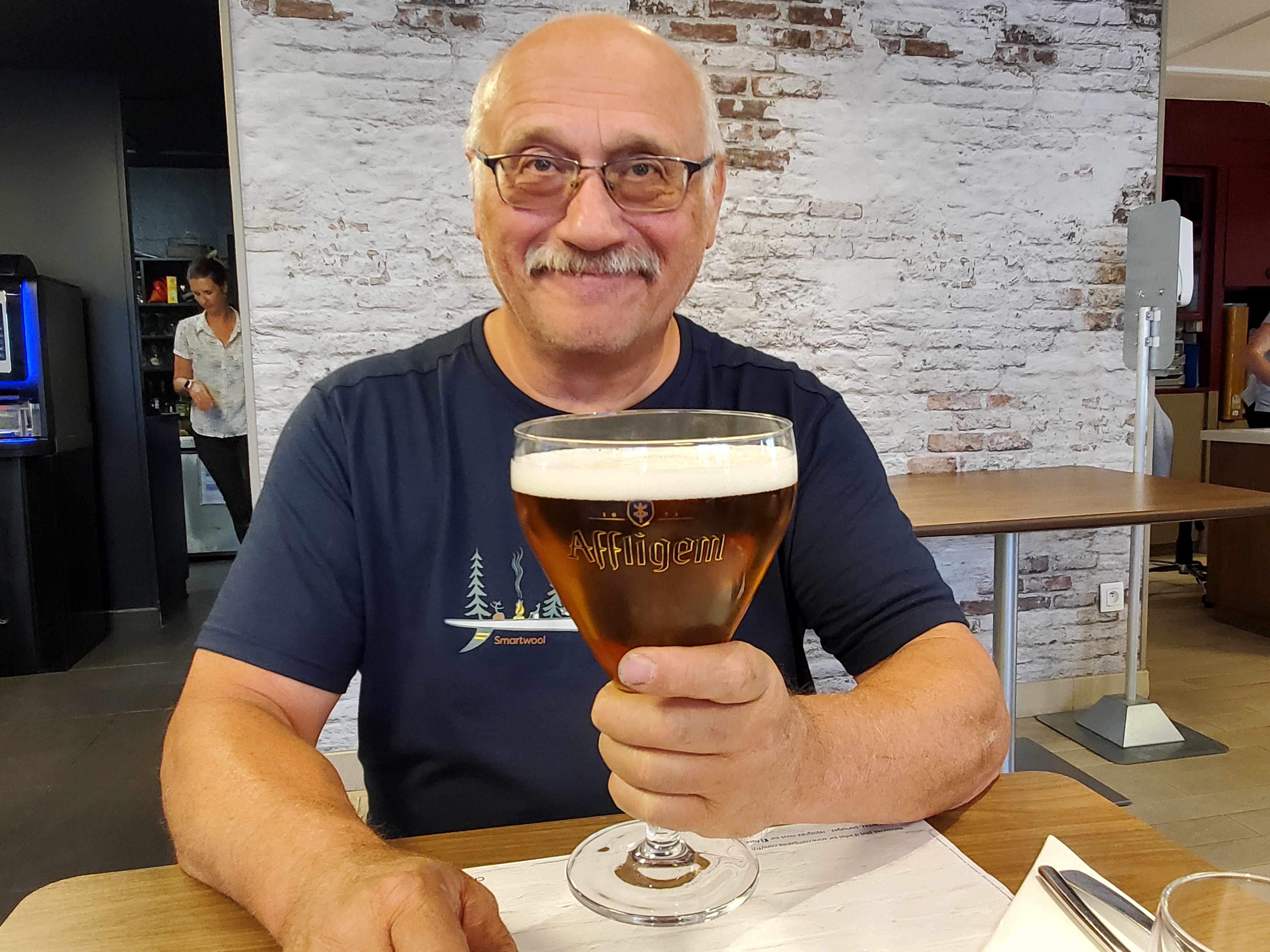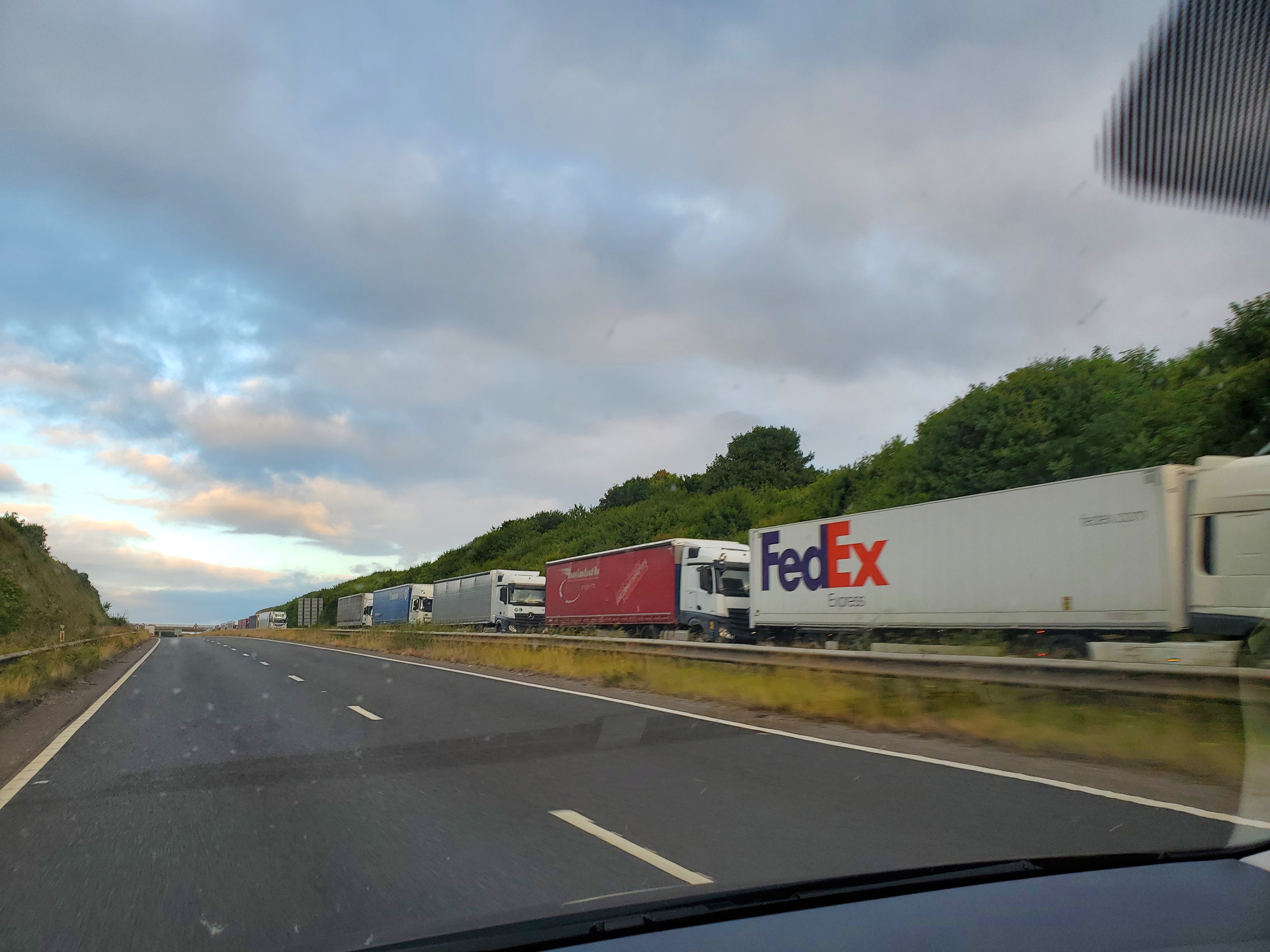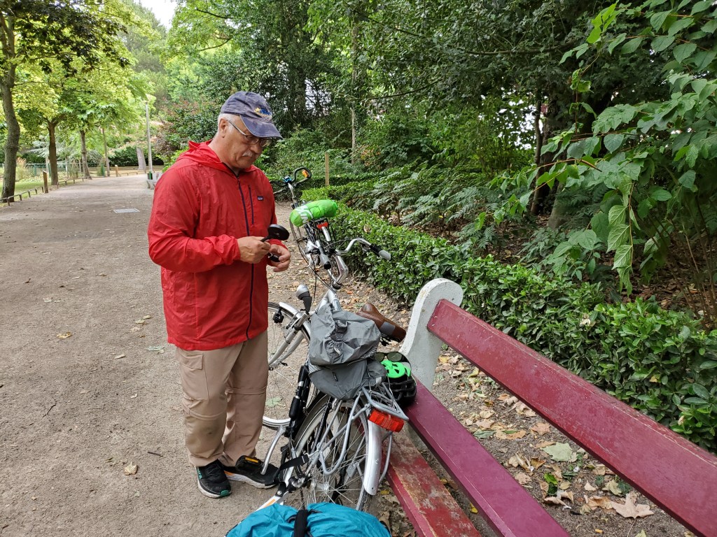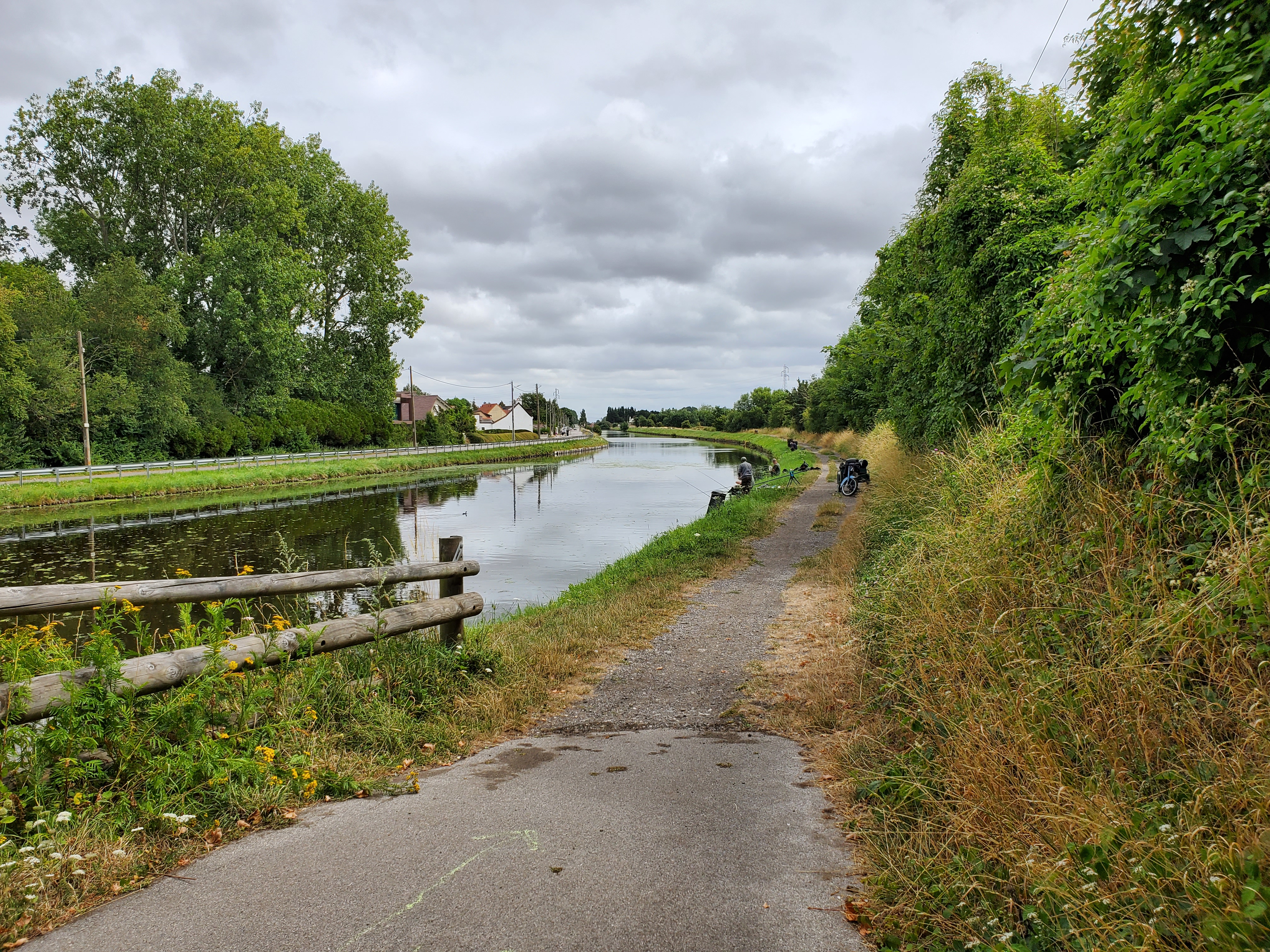 Picked up at 5:00 am from our guest house in Dover for our trip across the Channel to Calais. Setting my alarm for a number less than 6 is just wrong.Chilling line up of transport trucks waiting to cross. At one point they estimated 10000, yes, 10000 trucks in line. Dover port was a mess. So glad we decided on the train. And no wonder supply chains are disrupted.Ken was frightened that all the water from the English Channel would flood the chunnel. Our taxi driver tried to reassure him by asking “you brought your brolly, didn’t you, Ken?” 🤣3 tunnels..one for the passenger train (Eurostar), one for the car/truck train (Eurotunnel) and the escape tunnel which Ken was very interested in.Our driver Jonathan. Very entertaining and knowledgeable. Said the ticket prices had more than doubled since I booked. We all fell asleep whole on the train (being the excruciating early hour that we had to get up) and the joke became that Jonathan was an excellent driver but did fall asleep at the wheel.Finally picked up our bikes but headed out in the rain several hours later then we hoped.Bunger the Bugsnax with the Burghers of Calais. This statue by Rodin (he also did The Thinker) commemorates an incident in 1347 during the 100 Years War when Edward III demanded that 6 of the town’s 12 burgers sacrifice themselves so the town could be spared. The 6 men in turn were spared by Edward’s wife. Wives are good peoples!And off we go along the canal.Famous last words: this whole country is flat as a pancake, this should be easy!Aw…little peeping ducklings.8 cygnets!And then…oh no! Saint Theresa, help us! Bicycle breakdown. We were stuck by a church which happened to be open.So…after encountering unexpectedly long and steep hills (see aforementioned famous last words) and just after we crossed over the Eurostar rail line, Ken’s bike went kaput. We were 20 km from Calais. Ken being Ken he had picked up some twine along the way (Peter, we now have Stringy 3) and just like on the Camino it came in handy for some first aid on the bike…broken derailleur. He tied the derailleur up with the twine so he could at least glide down the hills to get to the next town. And push-up.The bike shop was not answering our calls and I remembered I had the card for a taxi driver I had hired earlier that day. I hoped he would remember me as we had sung along to the Village People’s YMCA together. He spoke some English and agreed to drive out to get us and take us back to Calais.Saw lots of baby bunnies while we were waiting but they were too fast.Just how many times are we going to stuff our bikes and trolley into strange cars? I have lost count. Christopher our Camino angel of the day. As a taxi driver he went above and beyond helping us out, even calling his son to bring tools to take the bikes apart. He wanted to know why we didn’t call him right away rather than pushing the bike 5 km. I blame getting up at 5:00 am for not thinking straight. It’s always a good day when it ends with beer! We managed to book a hitel at the end of the day, which wasn’t easy with all the holiday channel traffic.The Google car?