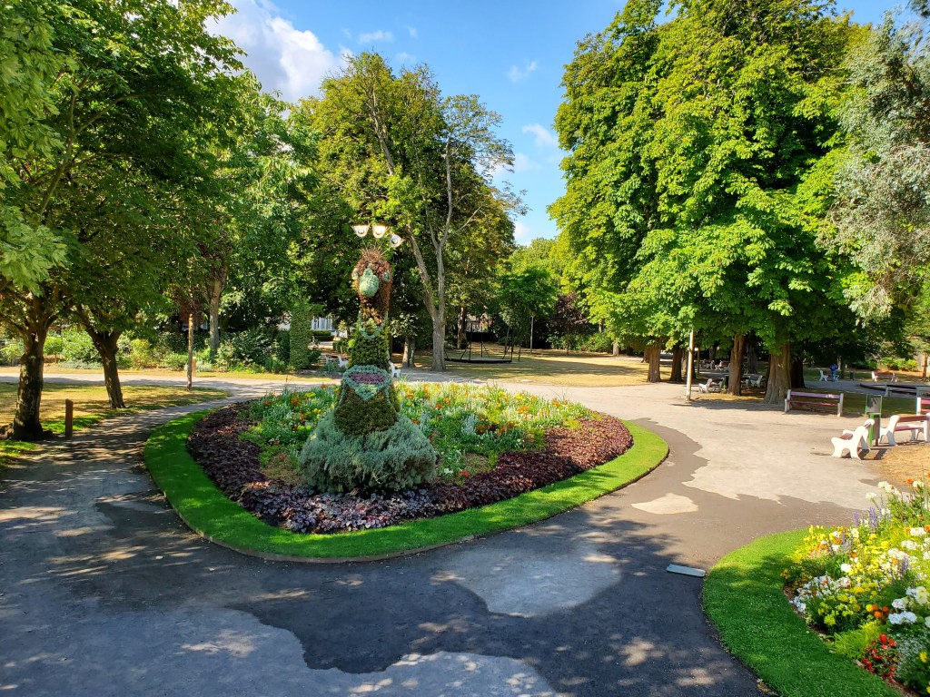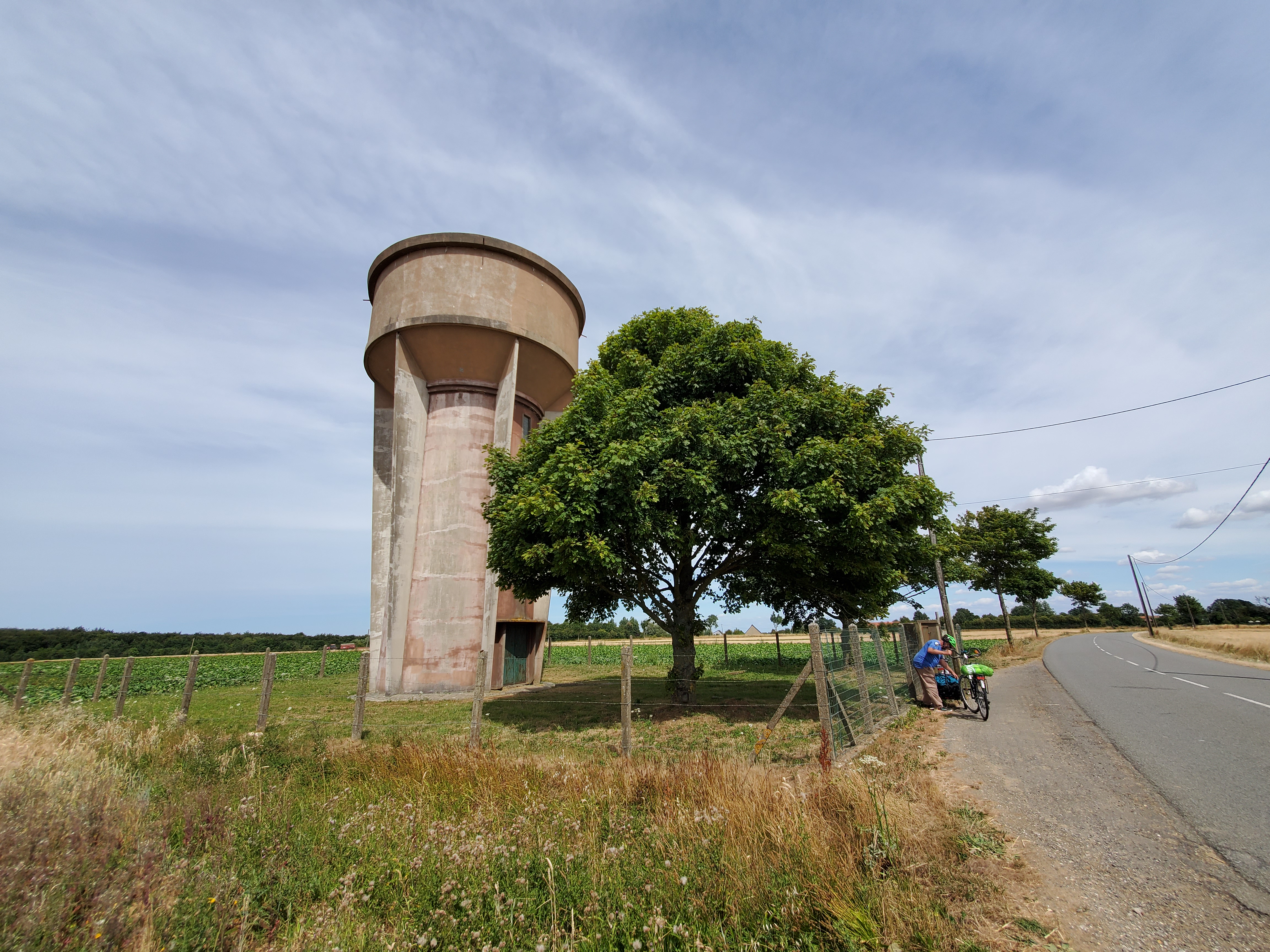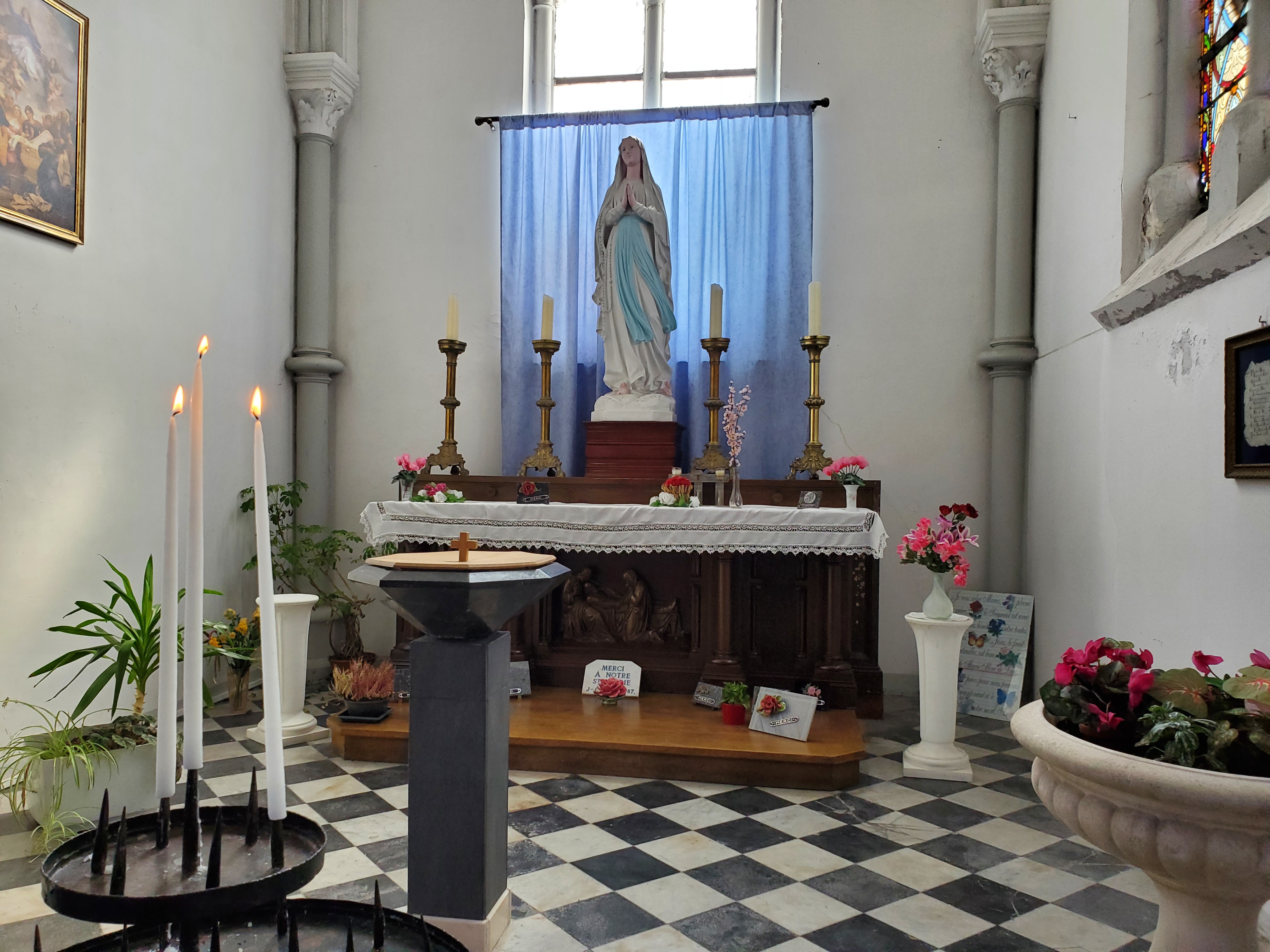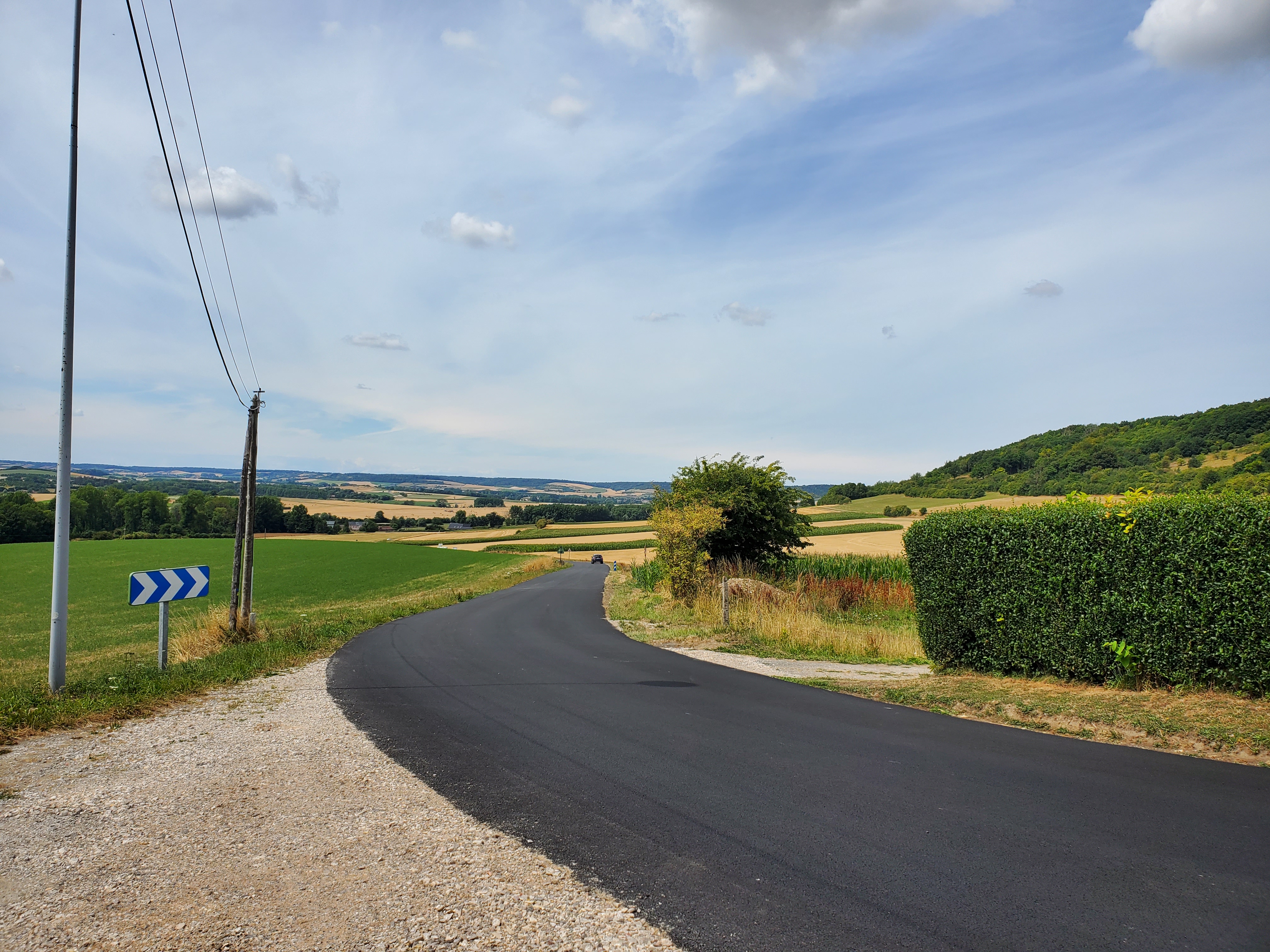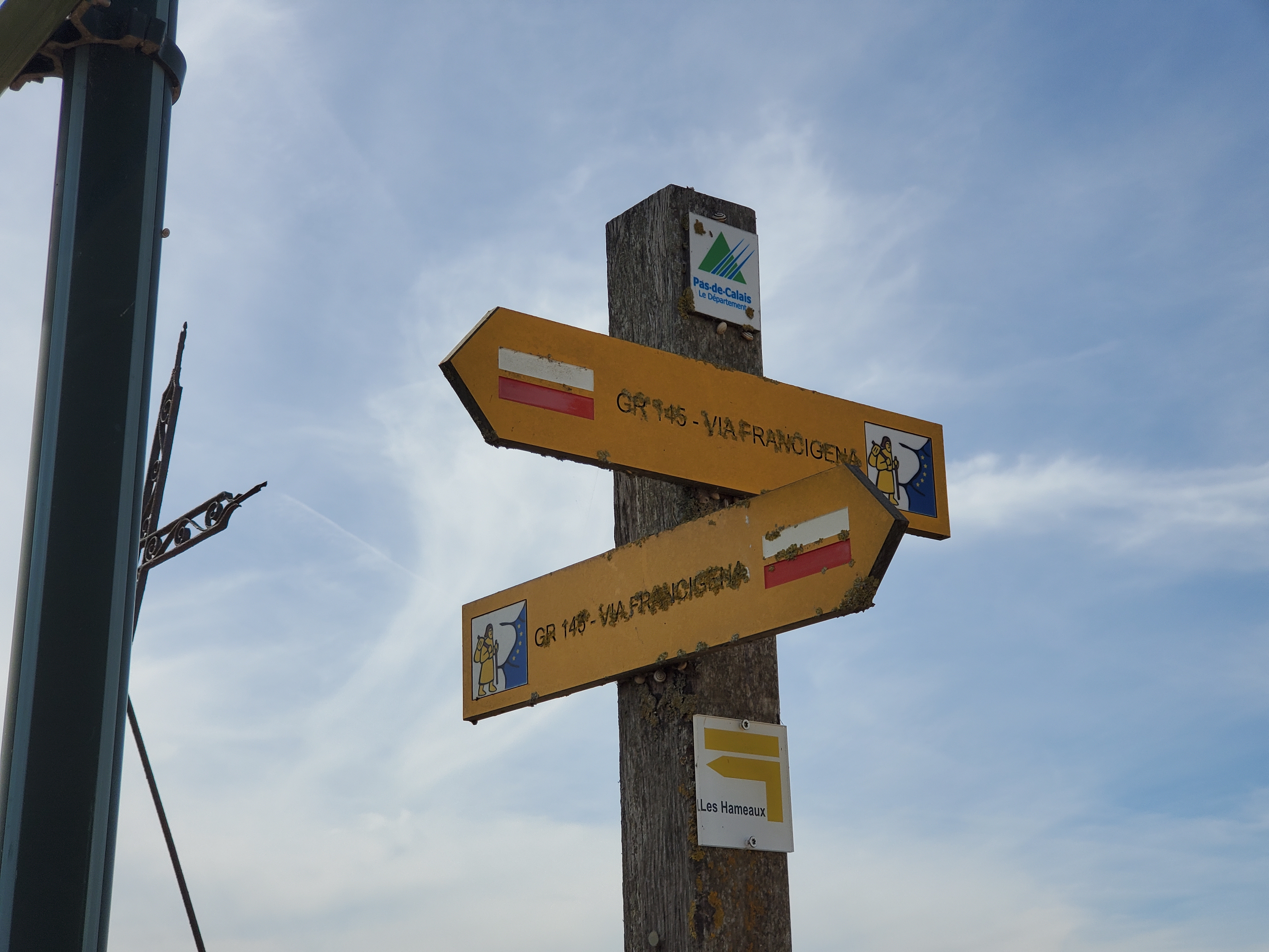 The day started off with a good breakfast, Canada Grade A maple syrup, and another ca to Christophe to ferry Ken, Rawley the Trolley and the broken bicycle back to the bike shop.I rode my bike back…loved this road filled with balloons.They opened the bikecshop an hour early for us. The Snax tried out this bicycle built for three.The man can sleep anywhere!Walking around while waiting for the bike to be repaired. You can certainly see the difference between the Cathic churches in France and the more austere Anglican churches in England. They had houseants in this one. And 3 more candles for our parents and Ryder.Look closely and you will see this is a peacock, with the lower garden its tail.Ken’s favourite place. He had waited there the day before while I ran errands and he became smitten with the sweet Stephanie. So back we went for a second day. At least she wasn’t a hungover New Brunswicker like the last woman he tried to dump me for on our 2019 Camino.They have the cutest little busses! I want one.The bicycle guy was kind enough to take us back to Licques where we had finished the day before but he had to make 2 trips. So we waited in a bar. Surprise surprise. I see a lot of this pottery around d here…classiest beer pulls ever!And yet another vehicle. How did he get 2 bicycles into that small car?Frédéric from the bike store…Camino angel of the day.Stringy 3. Long Camino story as to why it is so named.Even the bread store has classy ceramics.A lot of pushing and pulling up the hills.Much needed break…and the hill got steeper!This very angry turkey was guarding his chicken flock. He kept coming closer and closer, huffing and hissing and gobbling. I have great video but it is too long to post.We loved the sight of water towers because it meant we were at the top of the hill.Me: I want this!Also me: I want her too. Cutest long hair dalmatian.Still on route.And still smiling, oddly enough. Many big hills today. Famous last words: they can’t get any worse!Our digs for the night…Abbey of Notre Dame at Wisques. Not too shabby.Ken knows true joy when for the first time he did not have to haul the trolley up any flights of stairs.Ken can always find someone to talk to. Outside our small house.Sister Lucie, who sang Grace, and Jan from Holland and our 3rd pilgrim on the Via.Communal meal: soup, a slice of ham with Spanish rice and a tiny pickle if you were fast enough (Jan was not, although he and Ken did polish iff the wine), and apple compote and one cookie. Everything was carefully counted so you only got one. A simple convent meal.Our house.Bikes are parked for the night.