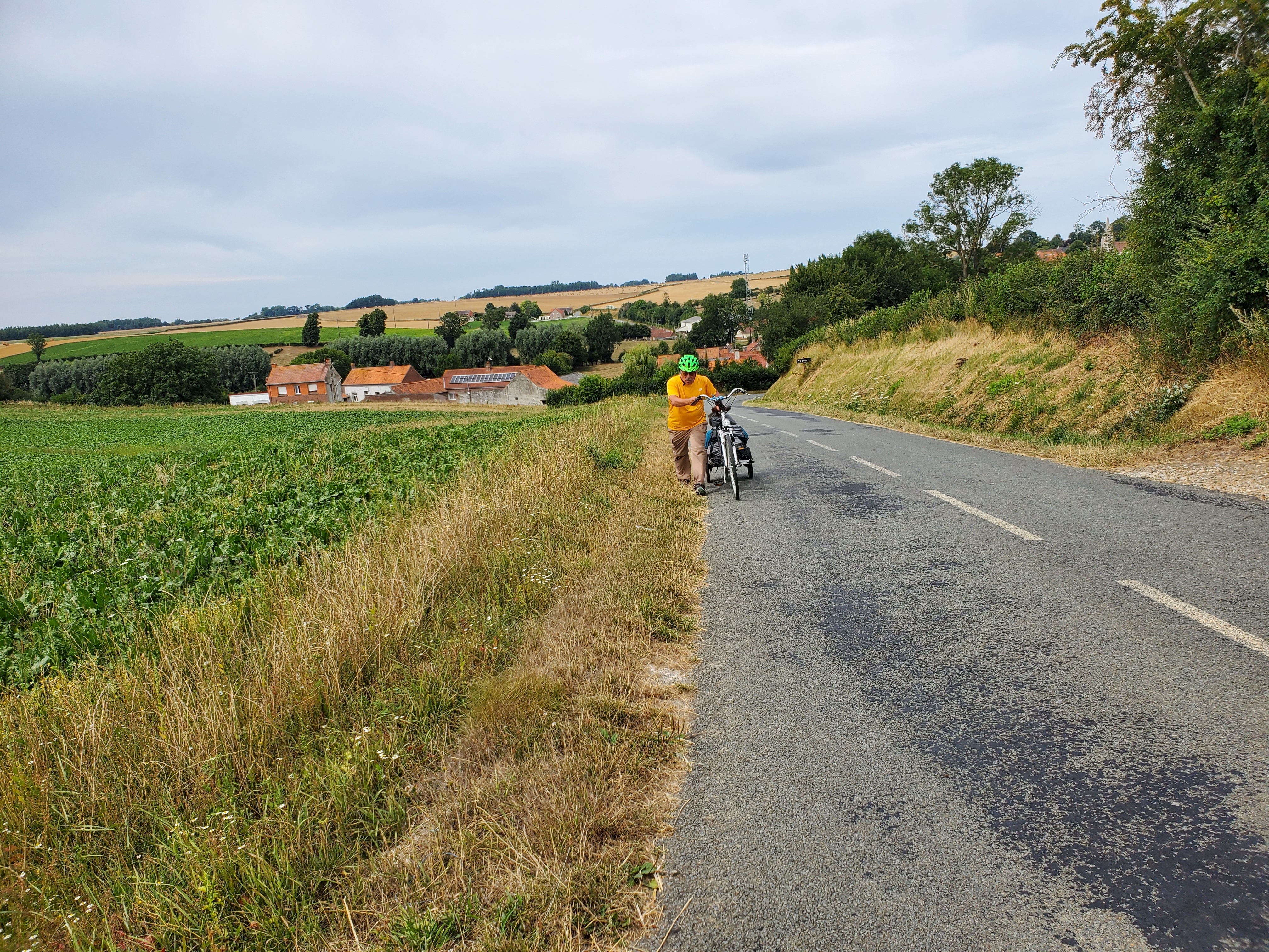 Wisques to Amettes. 30 km. We continue to encounter steep hills, some of which are scary to ride down. And the Google Map App doesn’t always keep us on paved roads. Ken stops wherever he can for a drink…which amounted to only one place today, in addition to a small store.